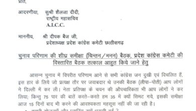 रायपुर. प्रदेश कांग्रेस के पूर्व प्रभारी महामंत्री चंद्रशेखर शुकला ने पार्टी की हार के कारणों का विश्लेषण करते हुए प्रदेश…