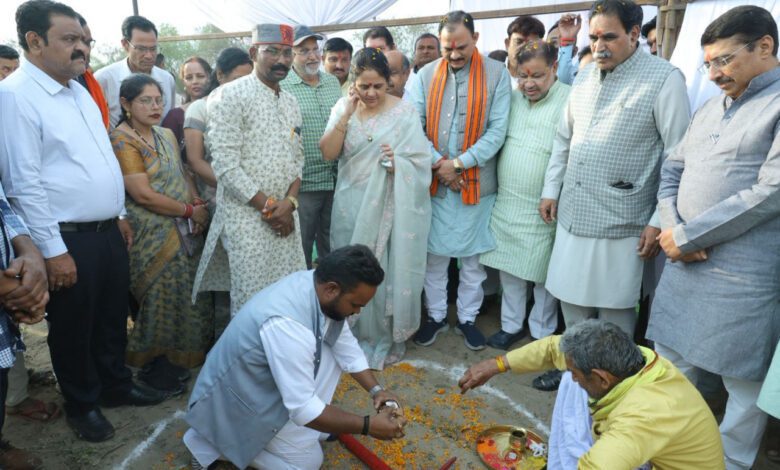 रायपुर: स्वास्थ्य मंत्री श्री श्याम बिहारी जायसवाल आज विकासखंड धरसींवा अंतर्गत सरोना, रायपुर में 100 बिस्तर वाले नवीन अस्पताल भवन के निर्माण हेतु भूमिपूजन कार्यक्रम में शामिल हुए।