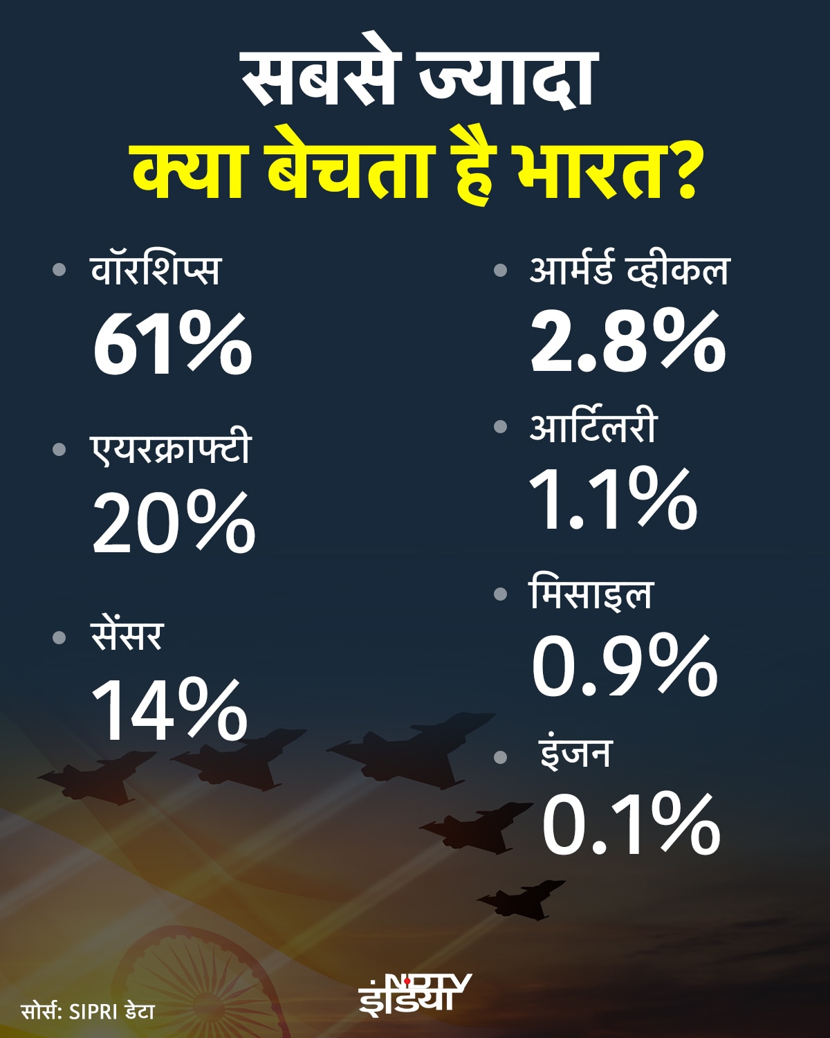 भारत का डंका अब पूरी दुनिया में बजने लगा है. आज का नया भारत अब दुनिया को हथियार-मिसाइलें बेच भी रहा है. आर्मीनिया से लेकर अमेरिका तक… 90 देश अब भारत के डिफेंस एक्सपोर्टर बन चुके हैं.