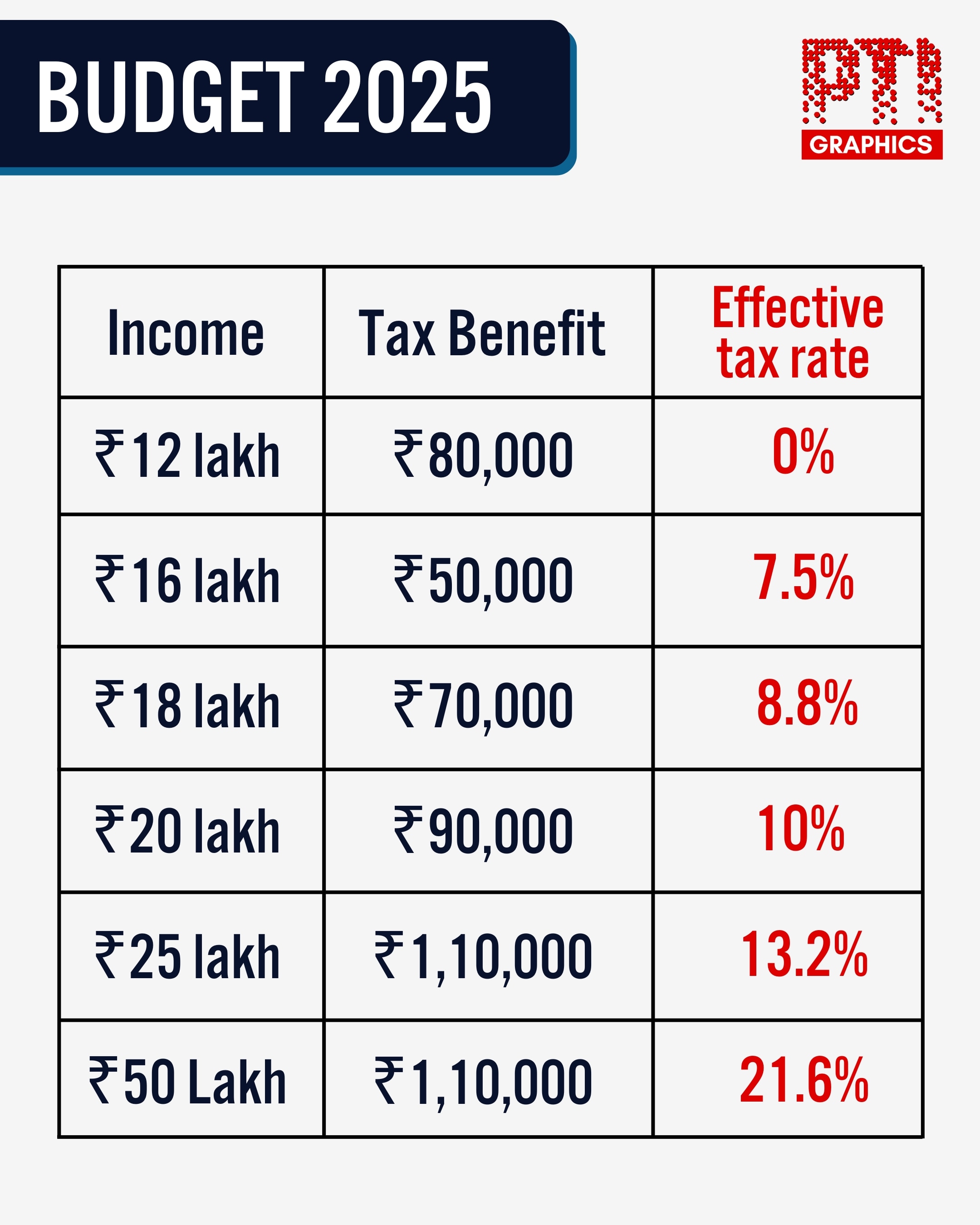 वित्त मंत्री निर्मला सीतारमण (Finance Minister Nirmala Sitharaman) ने शनिवार को आम बजट 2025-26 पेश किया . बजट में सरकार ने मध्यम वर्ग का खास ध्यान रखा और कई ऐसे ऐलान किए जिससे लोगों के हाथ में अधिक पैसा बचेगा. वित्त मंत्री के द्वारा बजट में नई इनकम टैक्स रिजीम के तहत आयकर छूट को बढ़ाकर 12 लाख रुपये कर दिया गया. वहीं, अगर वेतन पाने वाले लोगों को मिलने वाली 75,000 रुपये की स्टैंडर्ड डिडक्शन छूट को मिला दिया जाए तो अब 12.75 लाख रुपये तक की आय पर कोई टैक्स नहीं देना होगा.नई टैक्स रिजीम के तहत 0-4 लाख रुपये की आय पर टैक्स शून्य होगा. वहीं, 4-8 लाख रुपये की आय पर 5 प्रतिशत, 8-12 लाख रुपये की आय पर 10 प्रतिशत, 12-16 लाख रुपये की आय पर 15 प्रतिशत, 16-20 लाख रुपये की आय पर 20 प्रतिशत, 20-24 लाख रुपये की आय पर 25 प्रतिशत और 24 लाख से अधिक की आय पर टैक्स की दर 30 प्रतिशत होगी.इनकम टैक्स में कटौती होने से 12 लाख रुपये की आय पर 80,000 रुपये, 18 लाख रुपये की आय पर 70,000 रुपये, 20 लाख रुपये की आय पर 90,000 रुपये और 24 लाख रुपये की आय पर 1,10,000 रुपये की बचत होगी. वित्त मंत्री द्वारा बजट में ऐलान किया गया कि टीडीएस की दरों और सीमाओं की संख्या कम करके उसे युक्तिसंगत बनाया जाएगा. किराए पर टीडीएस की वार्षिक सीमा को 2.40 लाख रुपये से बढ़ाकर 6 लाख रुपये कर दिया गया है.वित्त मंत्री सीतारमण ने 4 साल तक रिटर्न भरने की भी राहत दी है. असिसमेंट ईयर में दोबारा यानी अपडेटेड रिटर्न भरा जा सकेगा. इसके साथ ही सरकार ने डोनेशन पर मिलने वाली छूट की राशि को 5 लाख रुपये से बढ़ाकर 10 लाख रुपये कर दिया गया है. बजट में प्रॉपर्टी को लेकर किए गए ऐलान से भी मध्यम वर्ग को भी राहत मिलेगी. अब 2 प्रॉपर्टी होने पर करदाताओं को किसी प्रकार का कोई टैक्स नहीं देना होगा. पहले यह छूट केवल एक प्रॉपर्टी पर ही सीमित थी. वरिष्ठ नागरिकों को भी बजट में सरकार द्वारा तोहफा दिया गया है. अब 60 वर्ष से ऊपर के नागरिकों के लिए ब्याज पर कर कटौती की सीमा को बढ़ाकर 1,00,000 रुपये कर दिया गया है, जो कि पहले 50,000 रुपये थी.वित्त मंत्री की प्रमुख घोषणाअगले हफ्ते नया इनकम टैक्स बिल लाया जाएगा. KYC प्रक्रिया को और आसान बनाया जाएगा. FDI की सीमा 74 पर्सेंट से 80 पर्सेंट हुई बुनियादी ढांचे को बढ़ाने के लिए राज्यों को 50 साल के ब्याज मुक्त ऋण के लिए 1.5 लाख करोड़ रुपये का परिव्यय होगा. बिहार में खाद्य प्रौद्योगिकी, उद्यमिता और प्रबंधन के राष्ट्रीय संस्थान की स्थापना की जाएगी.सरकार पांच आईआईटी में अतिरिक्त बुनियादी ढांचा तैयार करेगी, आईआईटी पटना का विस्तार करेगी.सभी सरकारी माध्यमिक विद्यालयों और प्राथमिक स्वास्थ्य केंद्रों को ब्रॉडबैंड कनेक्टिविटी सुविधा मुहैया कराई जाएगी.सभी सरकारी माध्यमिक विद्यालयों और प्राथमिक स्वास्थ्य केंद्रों को ब्रॉडबैंड कनेक्टिविटी सुविधा मुहैया कराई जाएगी.शिक्
