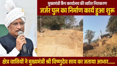 रायपुर: मुख्यमंत्री श्री विष्णु देव साय के निर्देश पर जशपुर जिले में सिंगीबहार से कछुआकानी मुख्य मार्ग पर स्थित जर्जर…