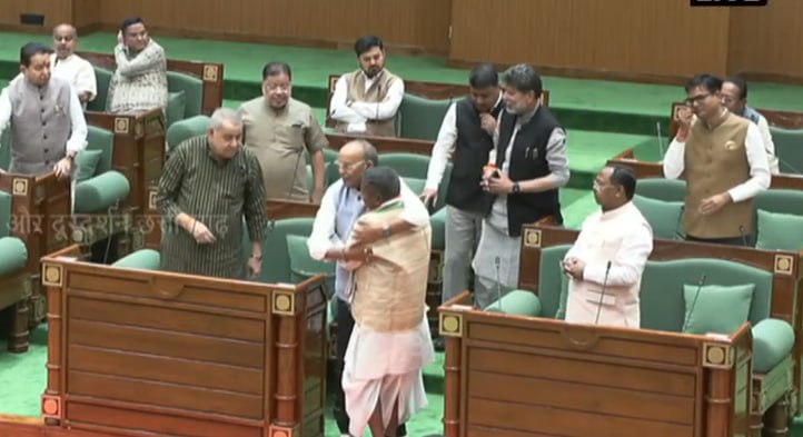 CGVidhansabha: विधानसभा के बजट सत्र की शुरुआत, विधानसभा में लखमा को मंत्री नेता, किरण, अजय व धर्मजीत ने गले लगाया