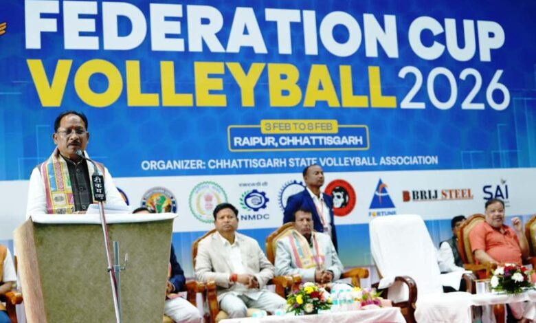 रायपुर. 3 फरवरी 2026। मुख्यमंत्री विष्णु देव साय ने आज रायपुर के सरदार बलबीर सिंह जुनेजा इंडोर स्टेडियम में 37वीं फेडरेशन कप व्हॉलीबॉल चैंपियनशिप का उद्घाटन किया। छत्तीसगढ़ राज्य व्हॉलीबॉल एसोशिएशन द्वारा 3 फरवरी से 8 फरवरी तक इसका आयोजन किया गया है। चैंपियनशिप में भारत के लिए खेल चुके कई अंतरराष्ट्रीय खिलाड़ियों के साथ कुल 16 टीमें भाग ले रही हैं। रेलवे, सर्विसेस और इंडियन यूनिवर्सिटी सहित कई राज्यों की टीमें इसमें भागीदारी कर रही हैं। पुरुष वर्ग में 10 टीमें और महिला वर्ग में 6 टीमें हिस्सा ले रही हैं।