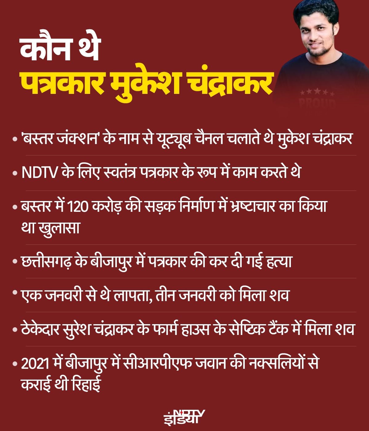 पत्रकार मुकेश चंद्राकर हत्याकांड में ठेकेदार सुरेश हुआ अरेस्ट, सेप्टिक टैंक से मिला था शव, पूरा मामला समझे