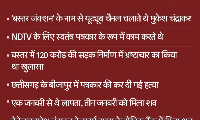 पत्रकार मुकेश चंद्राकर हत्याकांड में ठेकेदार सुरेश हुआ अरेस्ट, सेप्टिक टैंक से मिला था शव, पूरा मामला समझे