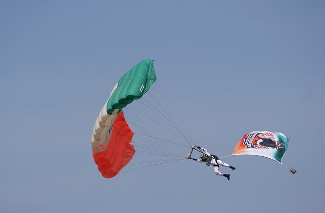 वायु सेना के जाबांज फाइटर पायलटों ने आसमान में दिल की आकृति बनाकर 25वें राज्योत्सव की शुभकामनाएं दीं। उन्होंने तिरंगे के तीन रंगों से डीएनए की आकृति बनाकर तिरंगे के प्रति अपना सम्मान प्रस्तुत किया। उन्होंने 360° में फाइटर जेट उड़ाते हुए उल्टा जेट भी उड़ाया। तेजस और युवाओं को समर्पित अंग्रेजी अक्षर ‘वाई’ की आकृति बनाने के साथ ही कई करतब दिखाए। टीम का प्रदर्शन केवल मनोरंजन नहीं, बल्कि युवाओं में देशप्रेम, साहस और भारतीय सशस्त्र बलों में सेवा की प्रेरणा जगाने का संदेश भी देता है।
