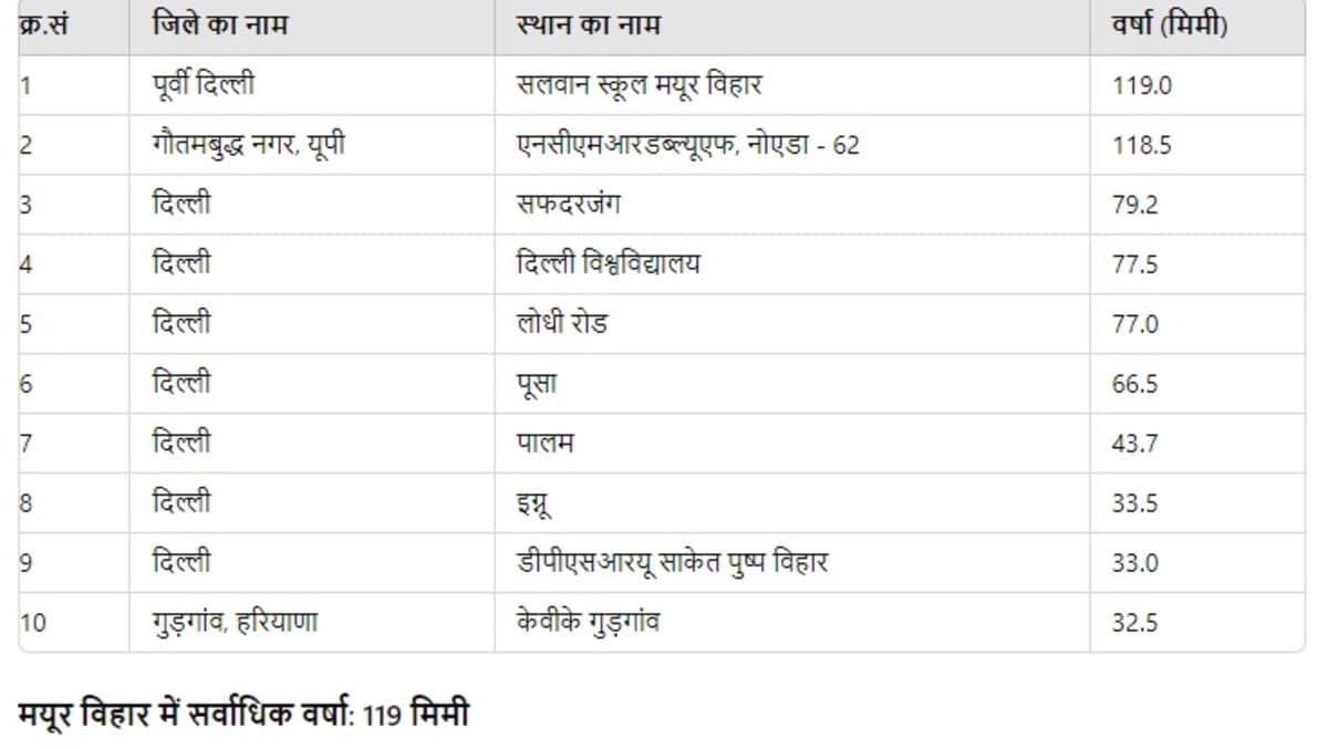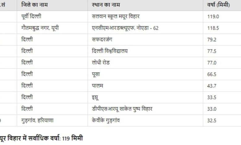 दिल्ली-NCR में किस इलाके में कितनी बारिश? मौसम विभाग ने जारी किया रेड अलर्ट
