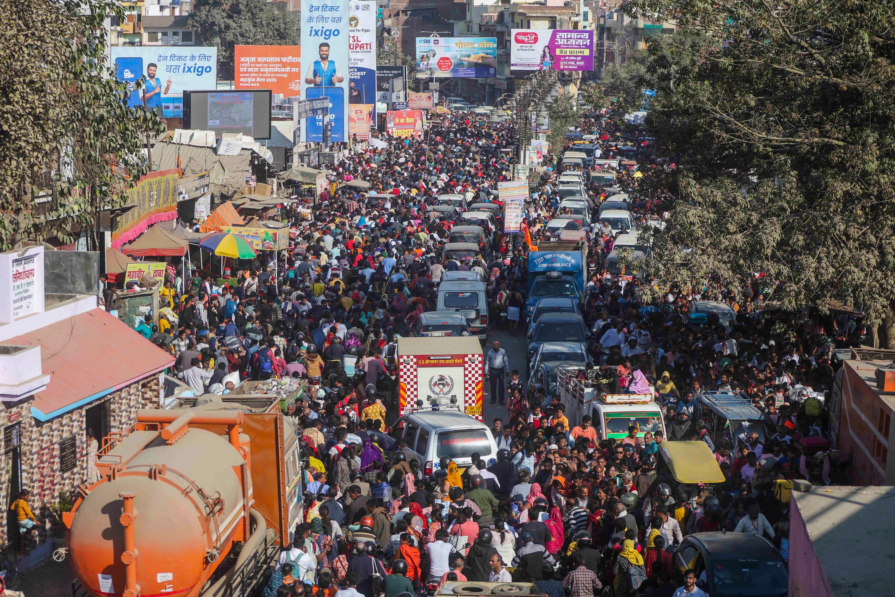 संगम नगरी प्रयागराज में आयोजित महाकुंभ में रोजाना लाखों-करोड़ों श्रद्धालुओं के आने का सिलसिला जारी है. देश के कोने-कोने से पहुंच श्रद्धालु संगम में पवित्र स्नान कर रहे हैं. रविवार की छुट्टी के चलते मेला क्षेत्र में श्रद्धालुओं की जबरदस्त भीड़ उमड़ रही है. संगम पहुंचने के सभी रास्तों में 10 से 15 किलोमीटर तक लंबा जाम लगा है. वाराणसी, लखनऊ, कानपुर से प्रयागराज आने-जाने वाले रास्तों पर तो 25 किलोमीटर तक का जाम देखने को मिल रहा है. इतना ही नहीं प्रयागराज संगम रेलवे स्टेशन के बाहर अत्यधिक भीड़ होने से स्टेशन बंद कर दिया गया है.उमड़ा श्रद्धालुओं का सैलाबमेला प्रशासन द्वारा जारी आंकड़ों के मुताबिक, रविवार शाम आठ बजे तक 1.57 करोड़ से अधिक श्रद्धालुओं ने संगम में स्नान किया तथा 13 जनवरी से नौ फरवरी तक 43.57 करोड़ से अधिक श्रद्धालु संगम में डुबकी लगा चुके हैं.महाकुंभ में अनुमान से अधिक श्रद्धालुओं के पहुंचने से यातायात व्यवस्था बिगड़ी.सड़कों पर गाड़ियां रेंग रही है. घंटों तक लोग जाम में फंस हुए हैं.संगम में डुबकी लगाने जाने वालों और वहां से लौटने वाले श्रद्धालु भूखे-प्यासे जाम खुलने का इंतजार कर रहे हैं.प्रयागराज में करीब 7 रास्ते जाते हैं. इन रास्तों में लंबा जाम लगा है.प्रशासन अपील कर रहा है कि 15 फरवरी के बाद ही लोग प्रयागराज आएं.शहर के अंदर भी 7 से 8 किलोमीटर का जाम लगा है.करीब 50 हजार से अधिक गाड़ियां प्रयागराज के बाहर पार्क करवाई गई हैं.पेट्रोल, गैस का संकट भी देखने को मिल रहा है.संगम रेलवे स्टेशन के बाहर अत्यधिक भीड़ होने से स्टेशन बंद कर दिया गया.14 फरवरी तक के लिए संगम रेलवे स्टेशन बंद किया गया. श्रद्धालु ने सुनाई आपबीतीरायबरेली से आए श्रद्धालु राम कृपाल ने बताया कि लखनऊ-प्रयागराज राजमार्ग पर फाफामऊ से पहले वह पांच घंटे जाम में फंसे रहे और फिर किसी तरह बेला कछार में वाहन खड़ा कर पैदल ही वहां से संगम घाट के लिए निकल पड़े.सरकार पर साधा निशानासमाजवादी पार्टी के अध्यक्ष अखिलेश यादव ने जाम की स्थिति के संबंध में ‘एक्स’ पर पोस्ट किया, ‘‘प्रयागराज महाकुंभ में फंसे करोड़ों श्रद्धालुओं के लिए तुरंत आपातकालीन व्यवस्था की जाए. हर तरफ जाम में भूखे-प्यासे, बेहाल और थके तीर्थयात्रियों को मानवीय दृष्टि से देखा जाए. आम श्रद्धालु क्या इंसान नहीं हैं?” अखिलेश यादव ने पोस्ट में कहा, ‘‘प्रयागराज में प्रवेश के लिए लखनऊ की तरफ 30 किलोमीटर पहले से ही नवाबगंज में जाम, रीवा रोड की तरफ से गौहनिया में 16 किलोमीटर पहले से जाम और वाराणसी की तरफ 12 से 15 किलोमीटर के जाम और ट्रेन के इंजन तक में भीड़ के प्रवेश कर जाने के समाचार हर जगह प्रकाशित हो रहे हैं. जनजीवन दूभर हो गया है.”वाहनों की संख्या बहुत अधिकएडीसीपी (यातायात) कुलदीप सिं