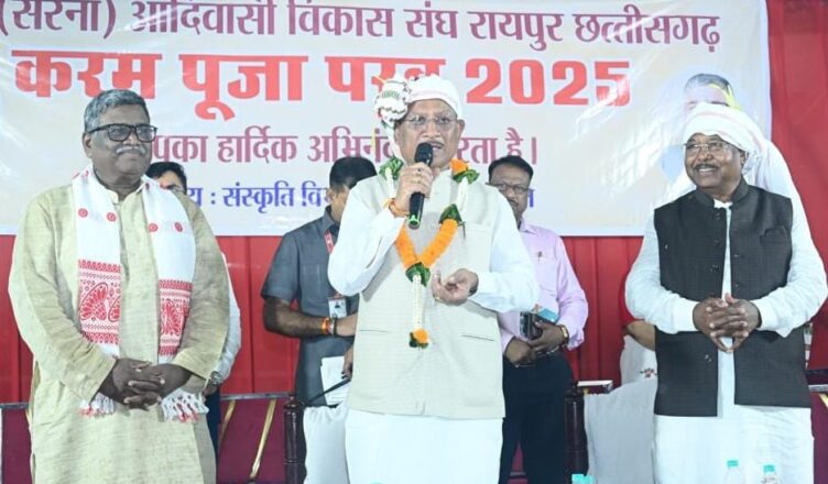 रायपुर। मुख्यमंत्री विष्णु देव साय आज शाम राजधानी स्थित अखिल भारतीय वनवासी आश्रम परिसर में उरांव (सरना) आदिवासी विकास संघ रायपुर द्वारा आयोजित करम पूजा परब 2025 महोत्सव में शामिल हुए।