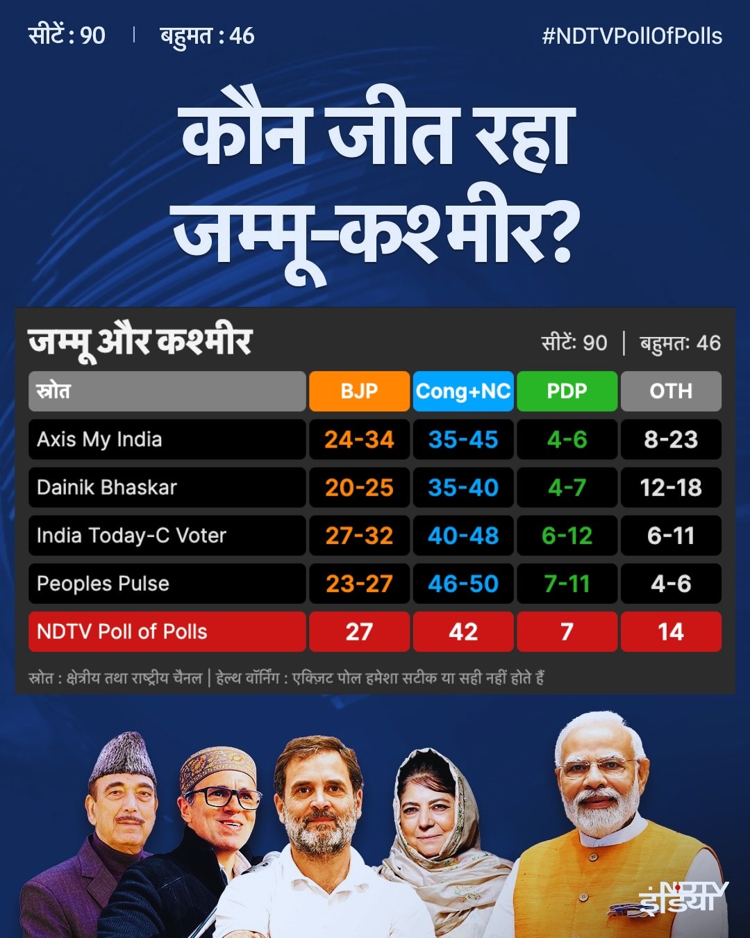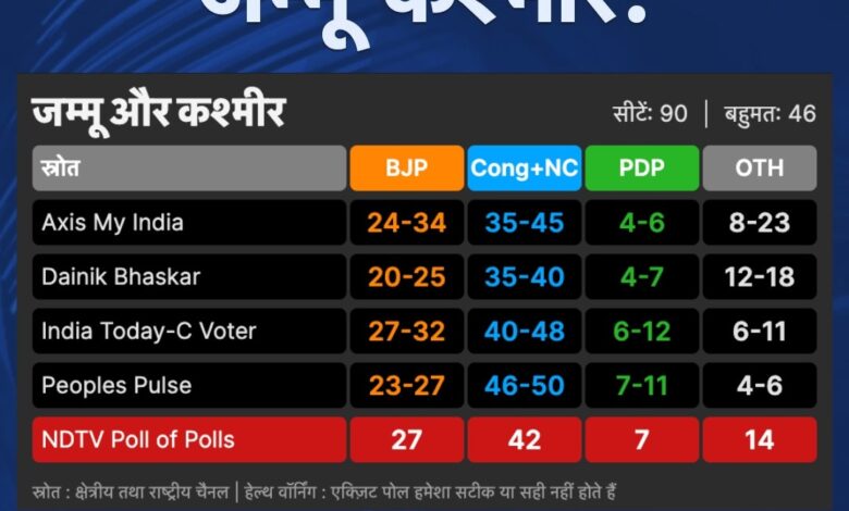 LIVE : J&K विधानसभा एग्जिट पोल – कांग्रेस-NC के साथ ने दिखाया रंग, सबसे ज्यादा सीटों का अनुमान