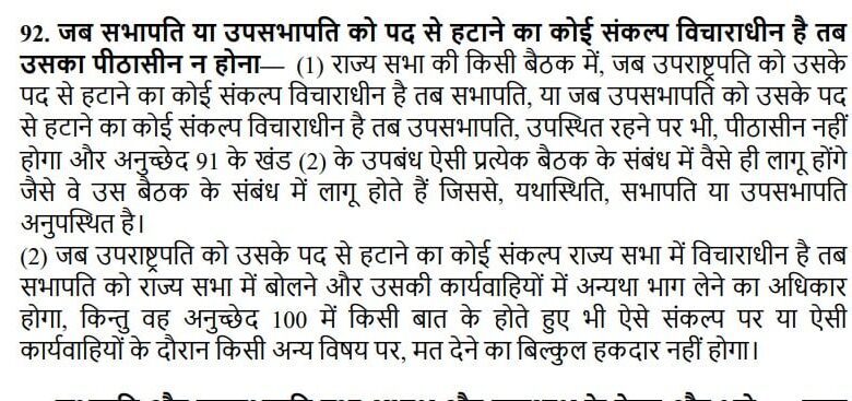 उपराष्ट्रपति को हटाने के लिए किसी भी सदन (राज्यसभा या लोकसभा) के सदस्यों का कम से कम 14 दिन का लिखित नोटिस देना अनिवार्य है. इस नोटिस में उपराष्ट्रपति को हटाने के लिए स्पष्ट कारण होने चाहिए.