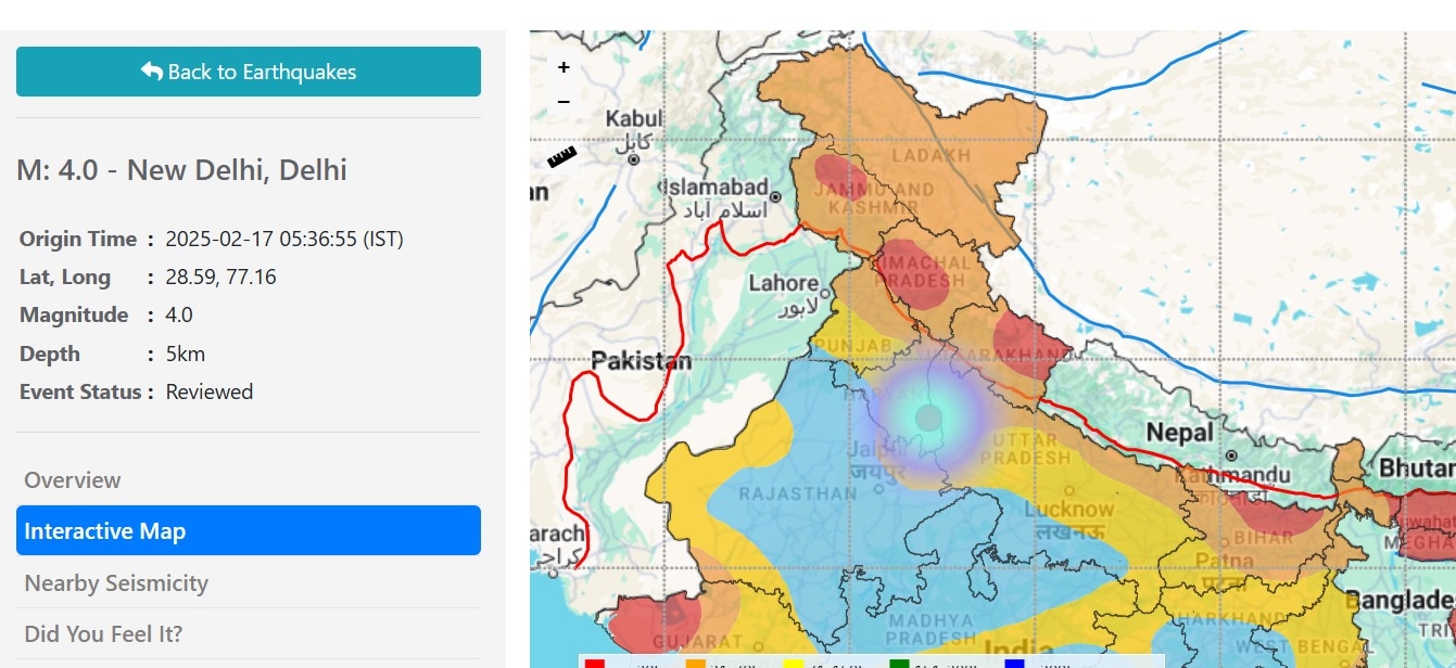 Delhi NCR Earthquake: दिल्ली-NCR में लगे भूकंप के तेज झटके, दहशत में लोगDelhi NCR Earthquake: दिल्ली में सोमवार सुबह भूकंप के जोरदार झटके महसूस किए गए. भूकंप के कारण लोगों की नींद भी खुल गई. कंपन इतनी ज्यादा थी कई सेकंड तक धरती डोलती रही. लोग दशहत में अपने घरों से बाहर निकल गए. रिक्टर स्केल पर भूकंप की तीव्रता 4.3 मापी गई. इसका केंद्र दिल्ली के आसपास ही बताया जा रहा है. इस कारण से भूकंप के झटके तेज महसूस हुए.सुबह-सुबह साढ़े पांच बजे. भूकंप के झटकों ने दिल्ली-एनसीआर समेत पूरे उत्तर भारत को दहला दिया. भूकंप के झटके इतने तेज थे कि लोगों की नींद टूट गई और लोग बदहवास घर से बाहर निकल पड़े. दिल्ली, नोएडा, फरीदाबाद, गुड़गांव, गाजियाबाद में भूकंप के बहुत तेज झटके महसूस किए गए.”EQ of M: 4.0, On: 17/02/2025 05:36:55 IST, Lat: 28.59 N, Long: 77.16 E, Depth: 5 Km, Location: New Delhi, Delhi,” posts @NCS_Earthquake. #Earthquake pic.twitter.com/LKwiBHSJg3— Press Trust of India (@PTI_News) February 17, 2025नेशनल सेंटर फॉर सीस्मोलॉजी ने कहा कि सोमवार तड़के दिल्ली-एनसीआर के कुछ हिस्सों में 4.0 तीव्रता का भूकंप आया. एक्स पर एक पोस्ट में कहा गया, भूकंप का स्थान नई दिल्ली था, पांच किलोमीटर की गहराई पर. एजेंसी के मुताबिक, झटके सुबह 5:36 बजे आए.