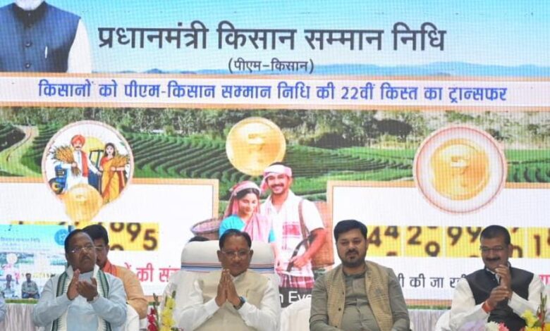 रायपुर: प्रधानमंत्री श्री नरेंद्र मोदी ने असम की राजधानी गुवाहाटी से प्रधानमंत्री किसान सम्मान निधि योजना की 22वीं किश्त जारी की। इस दौरान देशभर के 9 करोड़ से अधिक किसानों के खातों में लगभग 18 हजार 640 करोड़ रुपये से अधिक की राशि सीधे हस्तांतरित की गई। इस अवसर पर छत्तीसगढ़ के 24 लाख 71 हजार किसानों के खातों में 498.83 करोड़ रुपये की राशि अंतरित की गई।