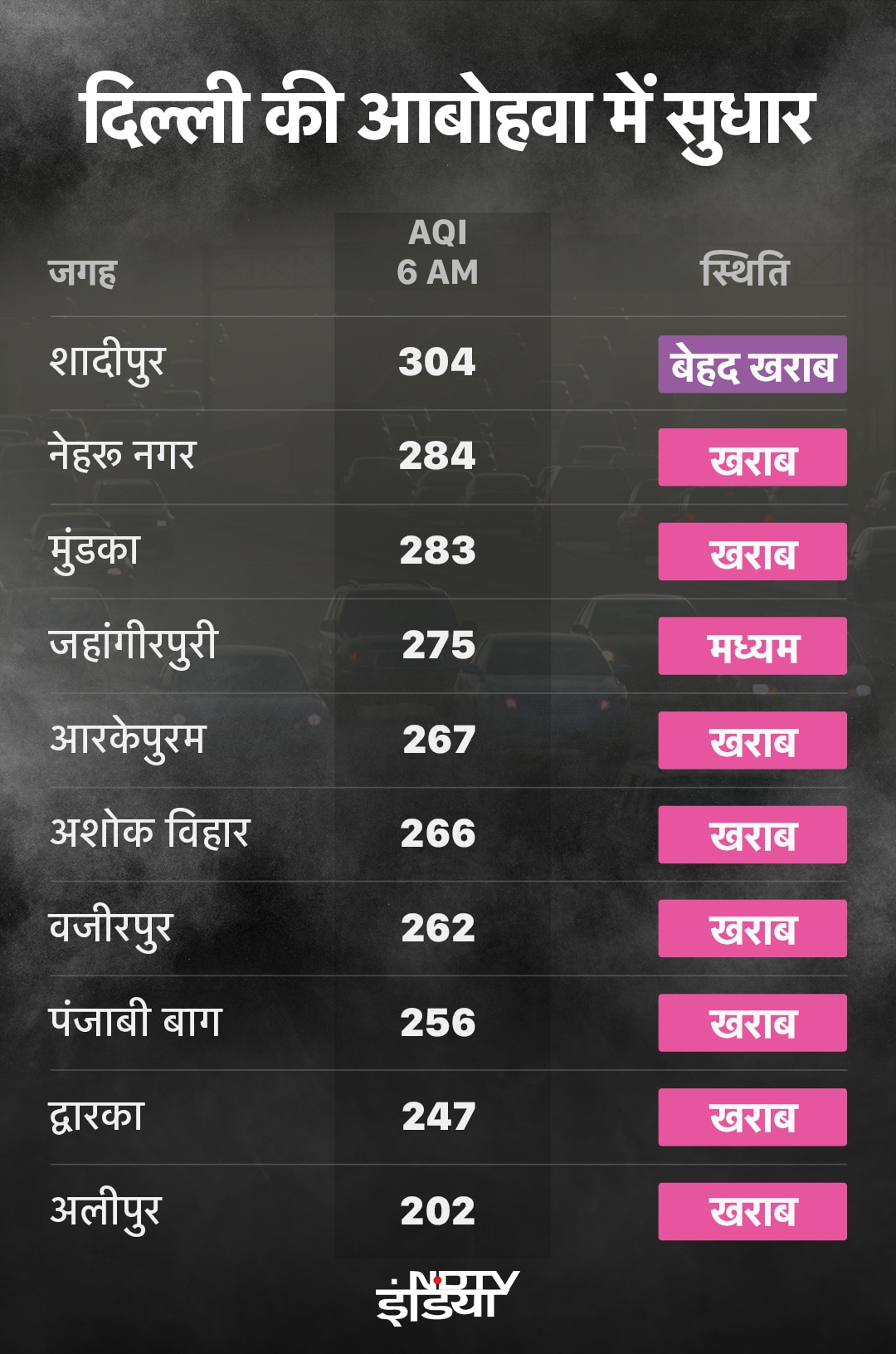 दिल्ली की आबोहवा में घुला जहर हुआ कम, कई जगहों पर 300 के नीचे AQI ; जानें कहां की हवा कितनी साफ