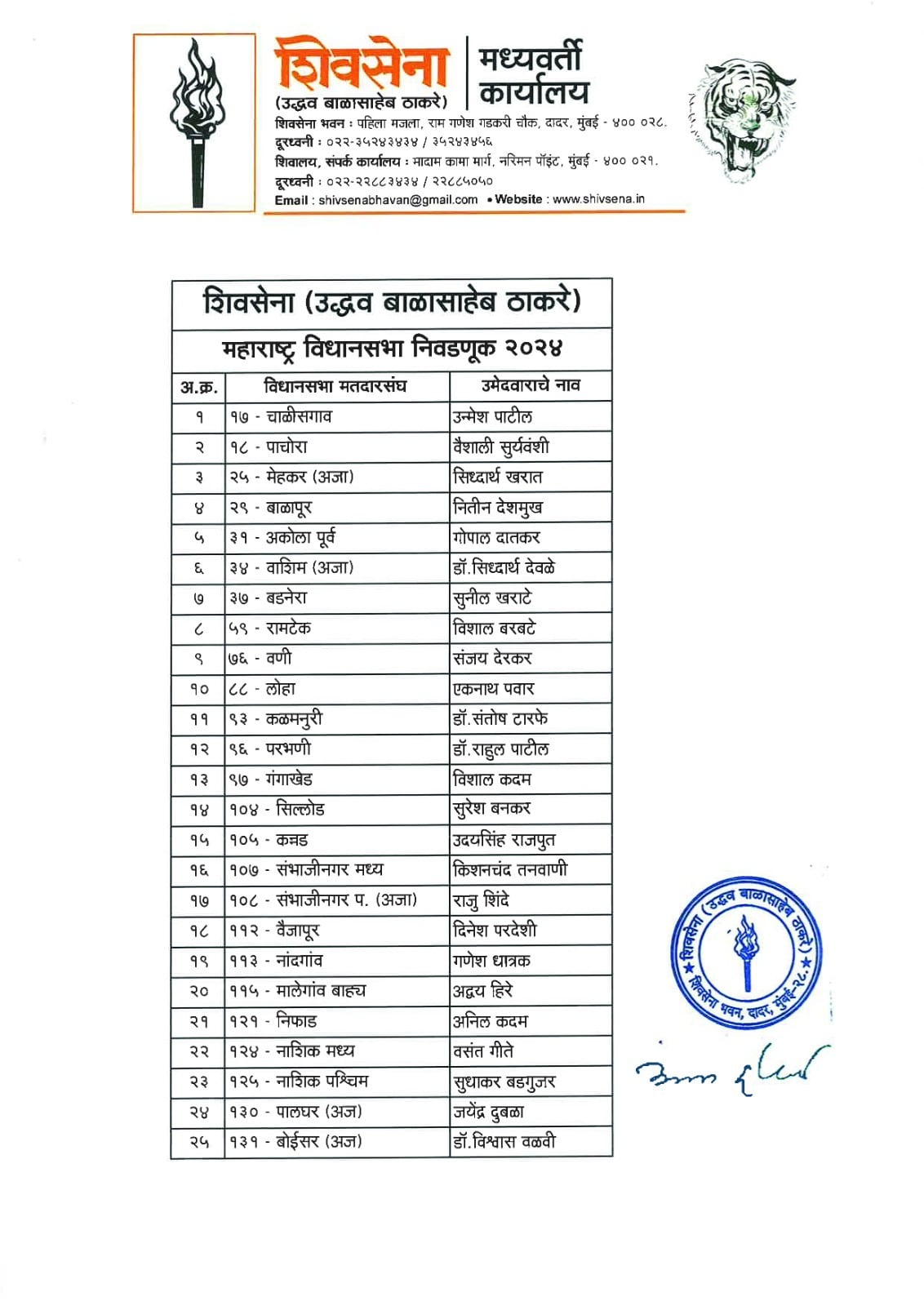 उद्धव ठाकरे की शिवसेना ने किया 65 उम्मीदवारों का ऐलान, जानिए किसको कहां से मिला टिकट