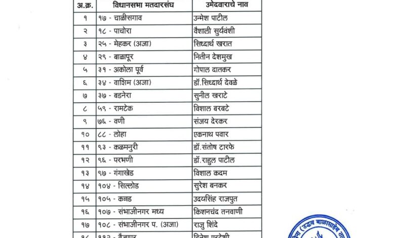 उद्धव ठाकरे की शिवसेना ने किया 65 उम्मीदवारों का ऐलान, जानिए किसको कहां से मिला टिकट