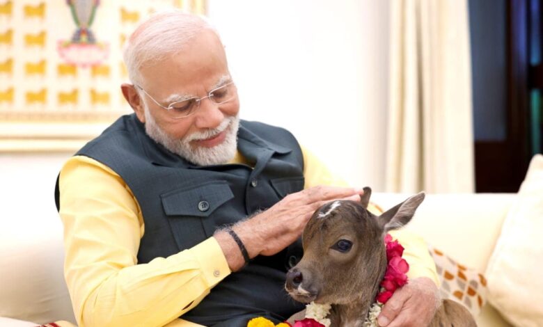 पीएम नरेंद्र मोदी के घर में नए मेहमान की एंट्री हुई है. इस नन्हे मेहमान को पीएम मोदी (Baby Cow In PM House) दुलारते और पुचकारते नजर आ रहे हैं. यह मेहमान गाय का बच्चा है, जिसका जन्म हाल ही में हुआ है. पीएम मोदी ने इसका नाम दीपज्योति (Deepjyoti) रखा है. गाय का ये नन्हा बच्चा देखने में बहुत ही मनमोहक है. पीएम मोदी ने इसकी तस्वीरें अपने ट्विटर हैंडल पर साझा की हैं. तस्वीरों में पीएम मोदी नन्हीं दीपज्योति को दुलार करते नजर आ रहे हैं. वहीं गाय का बच्चा भी पीएम मोदी के साथ बहुत ही सहज दिखाई दे रहा है.हमारे शास्त्रों में कहा गया है – गाव: सर्वसुख प्रदा:’।लोक कल्याण मार्ग पर प्रधानमंत्री आवास परिवार में एक नए सदस्य का शुभ आगमन हुआ है।प्रधानमंत्री आवास में प्रिय गौ माता ने एक नव वत्सा को जन्म दिया है, जिसके मस्तक पर ज्योति का चिह्न है।इसलिए, मैंने इसका नाम ‘दीपज्योति’… pic.twitter.com/NhAJ4DDq8K— Narendra Modi (@narendramodi) September 14, 2024पीएम मोदी ने कहा हमारे शास्त्रों में कहा गया है, ‘ गाव: सर्वसुख प्रदा:’ प्रधानमंत्री आवास में प्रिय गौ माता ने एक नव वत्सा को जन्म दिया है, जिसके मस्तक पर ज्योति का चिह्न है, इसलिए, मैंने इसका नाम ‘दीपज्योति’ रखा है.पीएम मोदी नन्ही दीपज्योति को अपने पूजा स्थल पर लेकर गए और उसका पूजन किया. पीएम ने उसके गले में फूलों की माला पहनाकर उसका स्वागत किया. इसके साथ ही उसे एक कपड़ा भी उढ़ाया. दीपज्योति का स्वागत करने के बाद पीएम मोदी ने उसे खूब दुलारा और अपनी गोद में बिठा लिया. वह कभी उसके सिर पर हाथ फेरते तो कभी उसे दुलार करते. नन्हा मेहमान भी पीएम के साथ काफी सहज दिखाई दे रहा है. दीपज्योति को दुलार रहे पीएम मोदी काफी खुश नजर आ रहे हैं. पीएम मोदी कभी उसे चला रहे हैं तो कभी उसे दुलार कर रहे हैं.पीएम मोदी गाय के नन्हें बच्चे को देखकर काफी भावुक दिखाई दे रहे हैं.इन तस्वीरों को देखकर ये जानना मुश्किल नहीं है कि पीएम मोदी के मन में जानवरों के लिए कितना प्यार है. इन तस्वीरों में पीएम का दीपज्योति संग एक अलग ही बॉन्ड नजर आ रहा है.