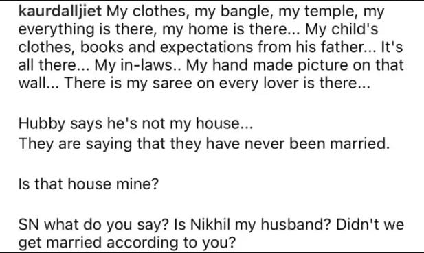 इस प्यार को क्या नाम दूं एक्ट्रेस दलजीत कौर बीते कुछ दिनों से अपनी दूसरी शादी को लेकर चर्चा में बनीं हुई हैं. दरअसल, बीते कई दिनों से वह इंस्टाग्राम पर मैरिटल स्टेटस को लेकर कुछ ना कुछ बातें शेयर कर रही हैं. वहीं इसमें एक्स्ट्रा मैरिटल अफेयर के बारे में भी बात की गई है, जिसके बाद कहा जा रहा है कि उनके पति निखिल पटेल ने उन्हें धोखा दिया है. इसी बीच उन्होंने अपने लेटेस्ट इंस्टाग्राम पोस्ट में बताया कि कहां गलती हो गई. हालांकि अब यह पोस्ट डिलीट कर दिया गया है. टाइम्स ऑफ इंडिया की रिपोर्ट के अनुसार, एक्ट्रेस ने लिखा, मेरे कपड़े, मेरा चूड़ा, मेरा मंदिर, मेरा हर सामान वहीं है. मेरा घर वहीं है. मेरे बच्चे के कपड़े, किताबें और उम्मीद अपने पिता से…सब वहीं है. मेरा ससुराल… मेरे हाथों से बनाई हुए तस्वीर उस दीवार पर वहीं है. हर दीवान पर मेरी सारी वहीं है. पति कह रहे हैं कि वो मेरा घर नहीं… कह रहे हैं कि शादी कभी हुई ही नहीं. क्या वो घर मेरा है. एसएन आपका क्या कहना है. क्या निखिल मेरे पति हैं? क्या हुई नहीं हमारी शादी आपके हिसाब से भी?गौरतलब है कि निखिल पटेल से दलजीत कौर ने 10 मार्च 2023 में शादी की थी, जिसमें उनकी फैमिली और खास दोस्त शामिल हुए थे. वहीं शादी में अनबन की खबरें तक चर्चा में आई जब एक्ट्रेस ने वेडिंग फोटो इंस्टाग्राम अकाउंट से डिलीट कर दीं.View this post on InstagramA post shared by khabri (@boll.ywood7770)जबकि बायो से पति का सरनेम भी हटा दिया. जो लोग नहीं जानते उन्हें बता दें कि दलजीत कौर की पहली शादी शालीन भनोट से हुई थी, जिनका एक बेटा जेडन भी है. वहीं साल 2015 में एक्ट्रेस ने तलाक ले लिया, जिसका कारण उन्होंने घरेलू हिंसा बताया. Pushpa 2: अरे भाई Pushpa Pushpa Song के नाम पर यह क्या कर डाला?| Allu Arjun