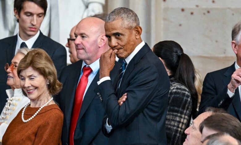 Donald Trump Swearing In Photo: डोनाल्ड ट्रंप अमेरिका के 47वें राष्ट्रपति बन गए हैं. उनके शपथ ग्रहण समारोह में दुनिया भर के धुरंधर लोग पहुंचे. अमेरिका की राजधानी में बहुत अधिक ठंड होने की वजह से शपथग्रहण समारोह कैपिटल रोटुंडा (संसद भवन के केंद्रीय कक्ष) में आयोजित किया गया. पहले शपथग्रहण समारोह खुले स्थान पर आयोजित करने की योजना बनाई गई थी. यहां देखिए उनके शपथ ग्रहण समारोह की खास तस्वीरें… अमेरिका के पूर्व राष्ट्रपति बराक ओबामा कभी लोगों से मिलते, मुस्कुराते तो कभी चिंतित नजर आए. इस तस्वीर में वो बेहद उदास और चिंतित नजर आ रहे हैं.इस तस्वीर में बराक ओबामा अपने से पहले अमेरिका के राष्ट्रपति रहे बिल क्लिंटन और उनकी पत्नी हिलेरी क्लिंटन के साथ थोड़े खुश नजर आ रहे हैं.अमेरिका के पूर्व राष्ट्रपति जार्ज बुश अपनी पत्नी के साथ और बराक ओबामा उनकी पत्नी से हाल-चाल लेते हुए.अमेरिकी की दूसरी महिला मतलब उपराष्ट्रपति की पत्नी उषा वेंस और प्रथम महिला मतलब राष्ट्रपति की पत्नी मेलानिया ट्रंप गपशप करती हुईं.डोनाल्ड ट्रंप की बेटी टिफनी ट्रंप अपने पिता की सरकार में शामिल विवेक रामास्वामी के साथ दिलचस्प अंदाज में.बिल क्लिंटन, हिलेरी क्लिंटन और जार्ज बुश किसी बात पर हंसी-मजाक करते हुए.शपथ लेने जाने के लिए ट्रंप उठे तो अपनी पत्नी को किस किया और इसके बाद कुछ इस तरह खुश नजर आए.एलन मस्क कुछ इस अंदाज में नजर आए. वे पूरे समय बहुत ही खुश दिखाई दे रहे थे.राष्ट्रपति पद के लिए साइन करने के बाद ट्रंप.ट्रंप के शपथ के बाद जो बाइडन अपनी पत्नी के साथ व्हाइट हाउस छोड़कर जाते हुए.पूर्व उपराष्ट्रपति और ट्रंप के खिलाफ चुनाव लड़ने वाली कमला हैरिस काफी शांत नजर आईं. इटली की प्रधानमंत्री जार्जिया मेलोनी हमेशा की तरह बेहद खुश नजर आईंये भी पढ़ें-सामने बैठे थे बाइडन और ट्रंप चला रहे थे दिल पर छुरियां, जानिए क्या-क्या सुना गएशपथ से पहले मेलानिया संग व्हाइट पहुंचने पर कार से उतरते ही ट्रंप से क्या बोले बाइडन? जानिएचीन को ताना, मंगल तक है जाना… अमेरिका का राष्ट्रपति बनते ही ट्रंप के 30 मिनट के भाषण का मर्म समझिएशपथ में ट्रंप के चार जिगरी यार, चारों का है एक ही कनेक्शनबिटकॉइन पूरे जोश में, डॉलर लुढ़क गया… ट्रंप की ताजपोशी पर बाजार में यह ट्रेंड क्योंकाई कौन हैं? डोनाल्ड ट्रंप के 10 पोते-पोतियां कौन, चुनाव में जीत के बाद जश्न का देखिए फैमिली VIDEOबेटी क्या करती है? ससुर कौन हैं?… डॉनल्ड ट्रंप की पूरी फैमिली से मिलिएट्रंप के शपथ समारोह में पहुंचे जयशंकर, फोटो में देखिए कैसे उनका अंदाज नजर आया जुदा-जुदा