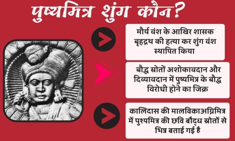 पुष्यमित्र शुंग. मौर्य साम्राज्य के पतन के बाद शुंग वंश का पहला शासक. सम्राट अशोक के पोते की हत्या के बाद पुष्यमित्र ने शुंग शासन स्थापित किया. क्या पुष्यमित्र बौद्ध विरोधी थे? जानिए इस हिंदू शासक के बारे में सबकुछ….